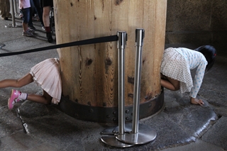後から聞いたんだけど、この柱の穴の大きさが大仏さまの鼻の穴と大きさと同じなんだってね。